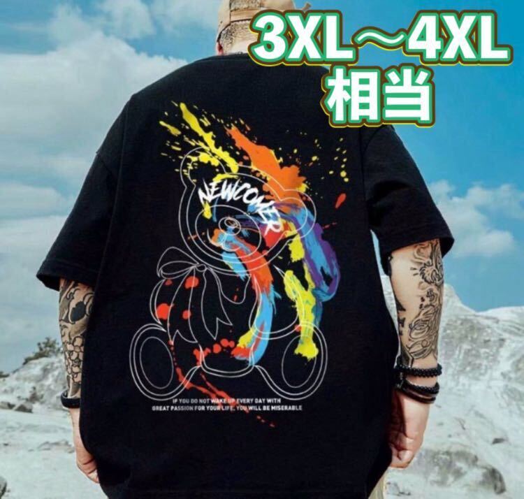 - Tシャツ 半袖 ブラック 3XL〜4XL相当 ビッグシルエット ユニセックス 男女兼用 ストリートカジュアル B系