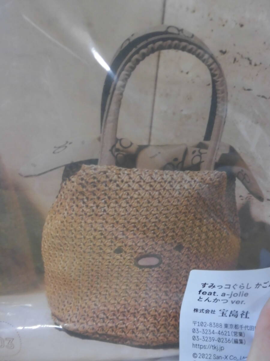 > ●すみっコぐらし とんかつ かごバッグ●feat. a-jolie/アジョリー/宝島社/バスケット風/ミニハンドバッグ/ランチバッグ /ミニトートバッグ