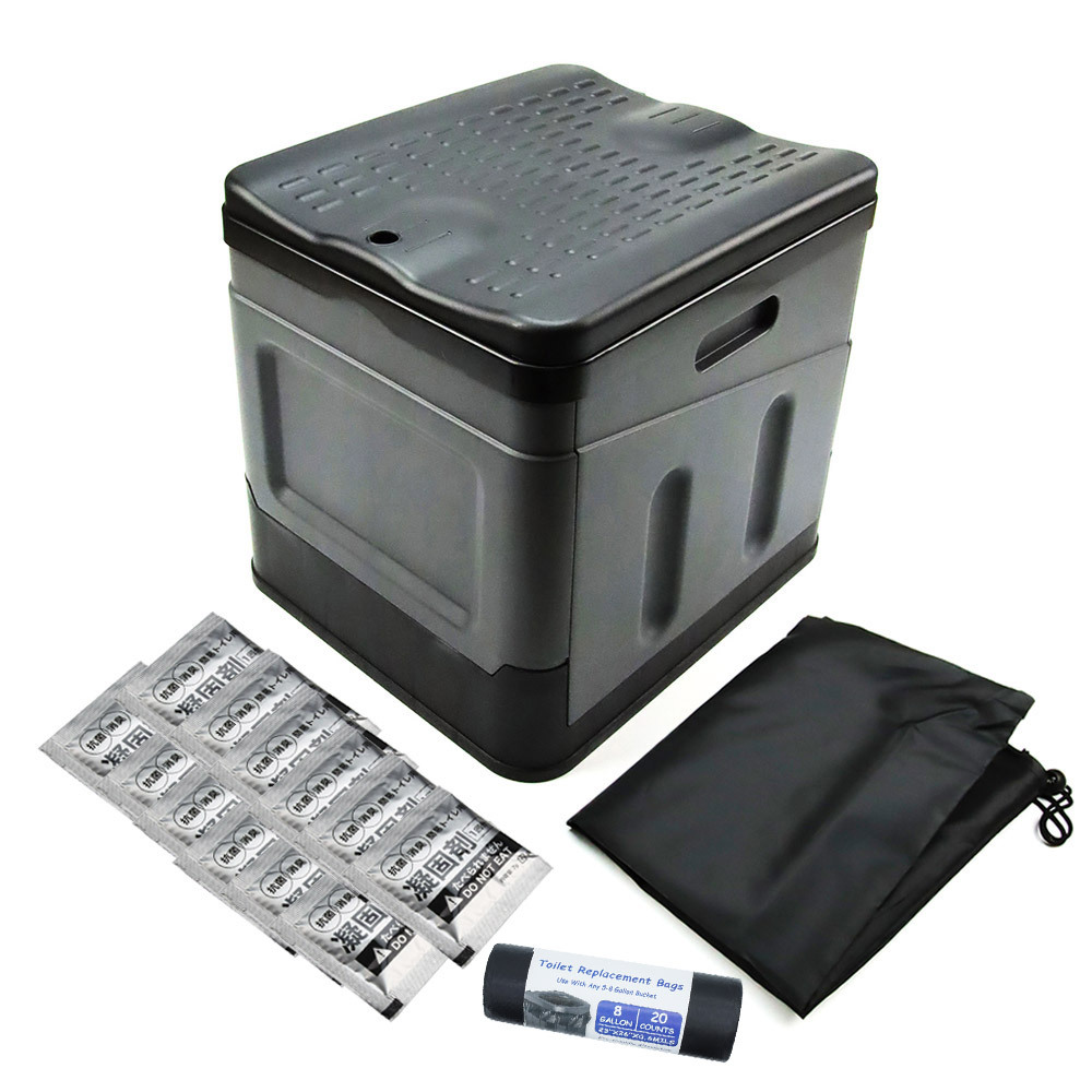 - 簡易トイレ 携帯トイレ 処理袋20枚付 凝固剤12個付き 防災グッズ 多機能 非常用 防災 車中泊 収納バッグ付属折りたたみ式 (グレー)