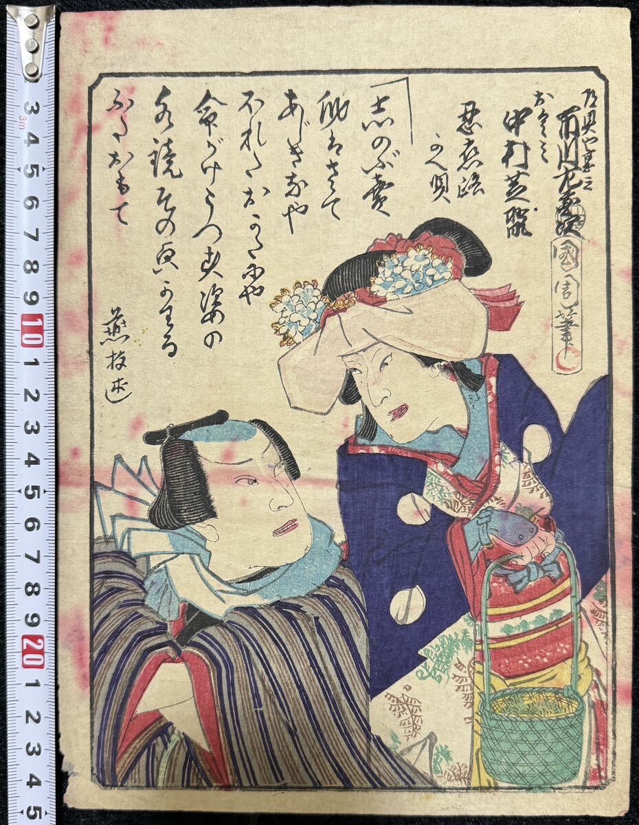 - 明治期/真作 豊原国周 本物浮世絵木版画 歌舞伎絵 役者絵 芝居絵 錦絵 中判
