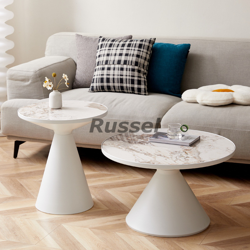 - サイドテーブル シンプル コンパクト 大理石調 直径 50cm おしゃれ かわいい コーヒーテーブル ホワイト ブラック グレー レッド グリーン