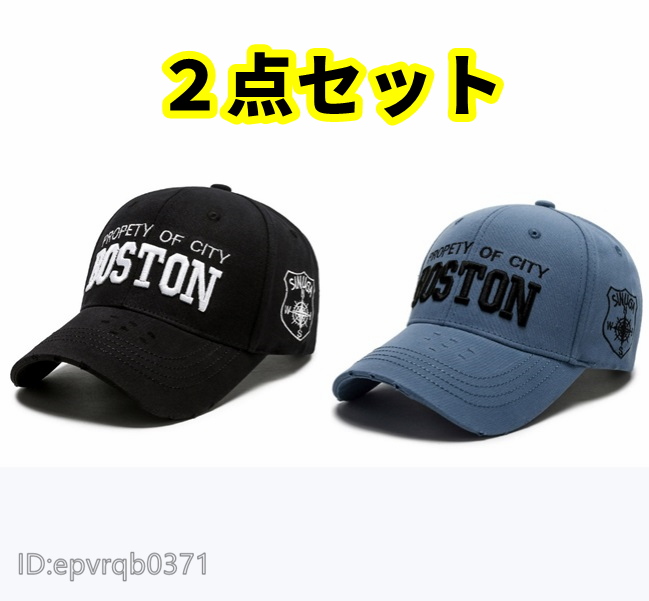 > 【2点セット】 新品 野球帽 メンズ キャスケット 英文字 刺繍 キャップ 帽 子 ダメージ加工 フリーサイズ 男女兼用 調節可能 黒/青