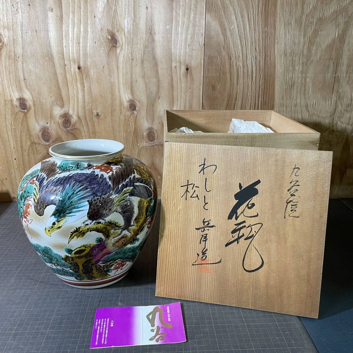 - 【11534P105】九谷焼 花器 花瓶 岳津造 鷲 松 大型 生花 花入 壺 陶器 インテリア コレクション 共箱付き ※書き付けあり