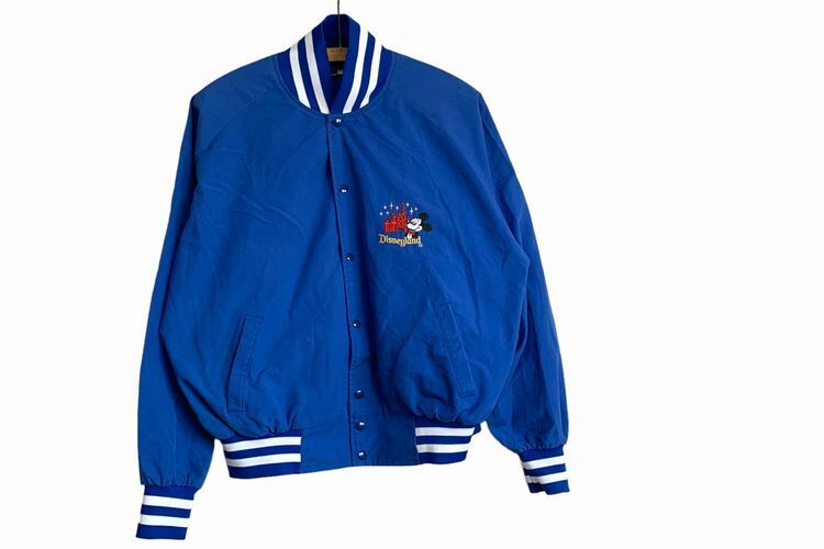 - 80sビンテージUSA製DisneyディズニーMickeyミッキーディズニーランド刺繍コットンアワードジャケットXLブルースタジャンアメカジh23784