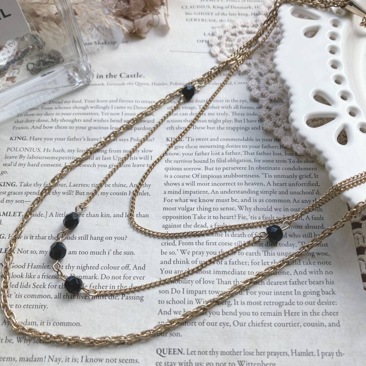 - ヴィンテージネックレス ロングチェーン 3連 トリプル ゴールドカラー ブラック ☆Vintage jewelry accessories japan k0669