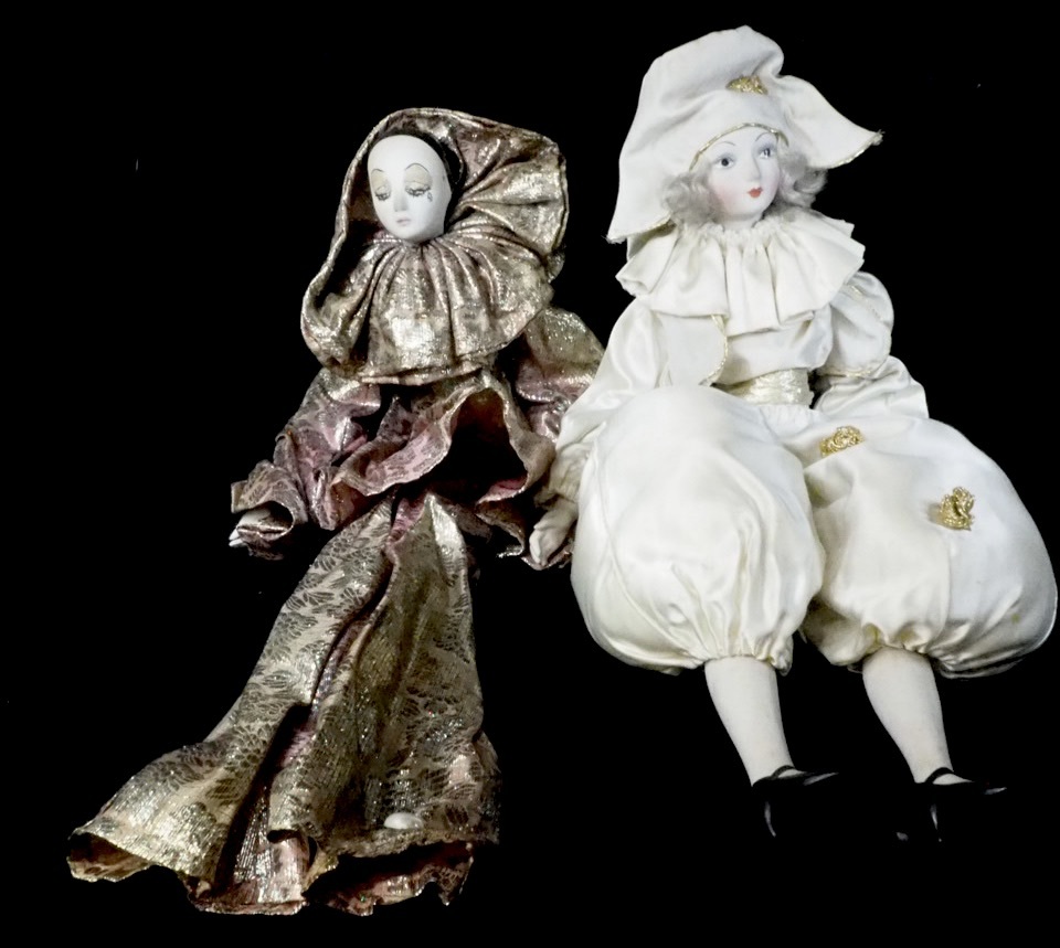 - シックで上品な衣装に身を包んだお人形!海外ビンテージ 陶器製ピエロ人形2体セット 道化師 1980年代 KYI607