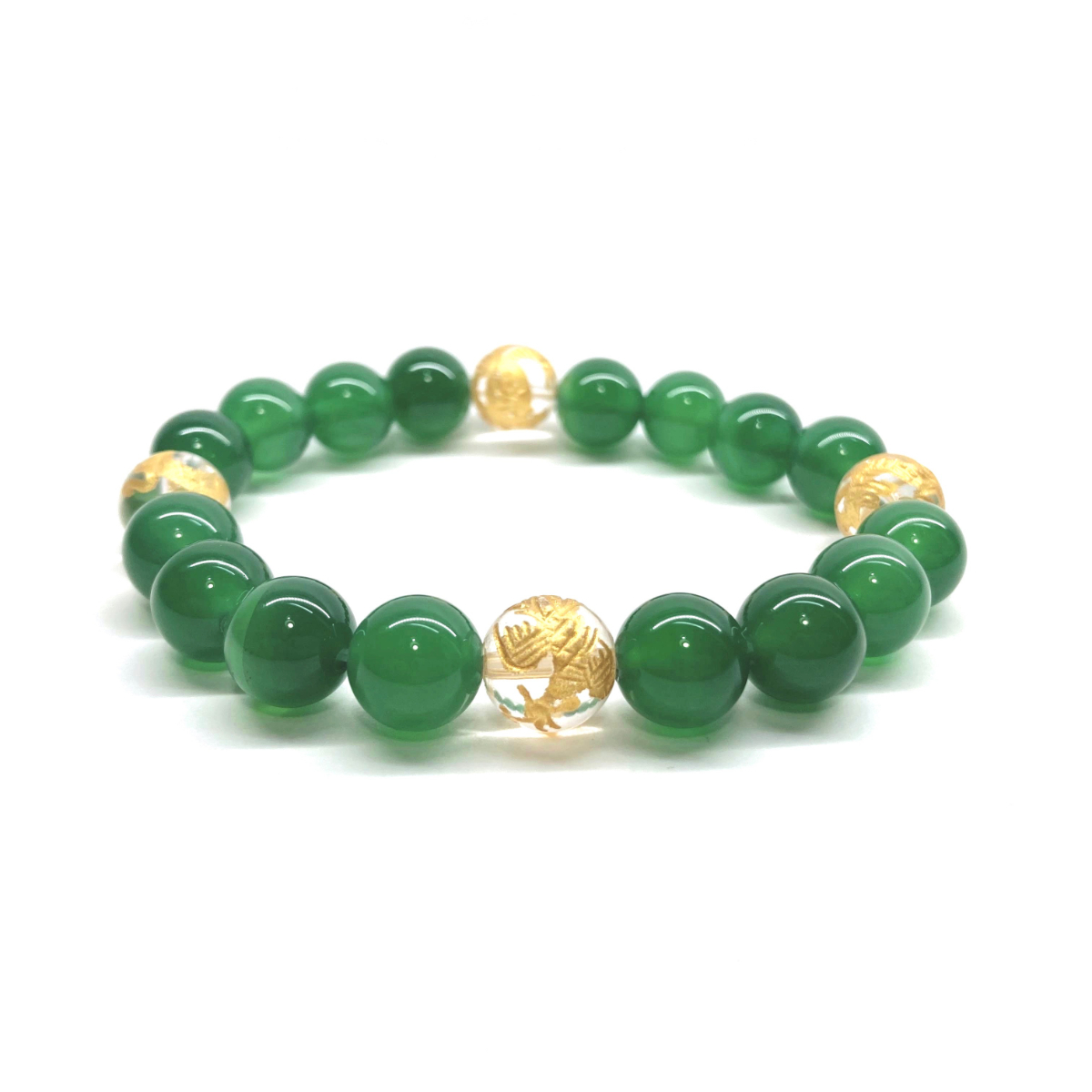 - 10mm 四神獣金彫水晶×緑瑪瑙 パワーストーン ブレスレット天然石 運気上昇 開運 金運 恋愛運 お守り 青龍 白虎 玄武 朱雀 シンプル