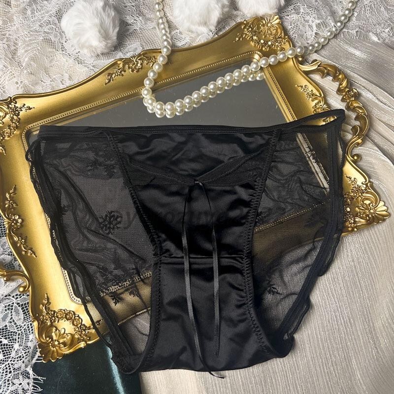 > 131-101-6 高級レース 光沢サテン リボン 可愛い系 ショーツ【ブラック,F】レディース 女性 セクシー 学生 JK JC ランジェリー パンツ .1