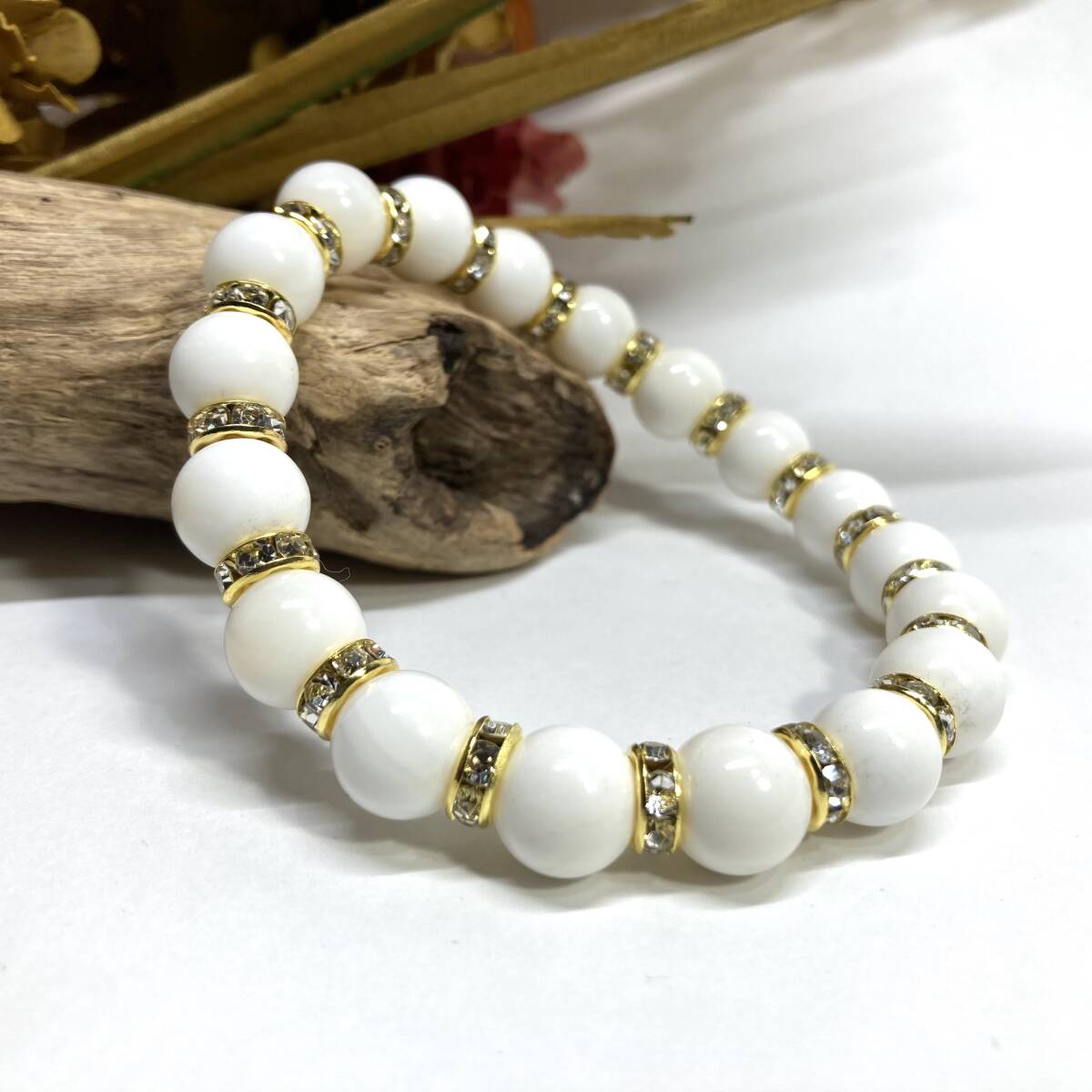 - ホワイトオニキス パワーストーン ブレスレット 天然石ブレス 10mm メンズ・レディース (ロンデル:ゴールド) 開運 浄化 数珠ブレス