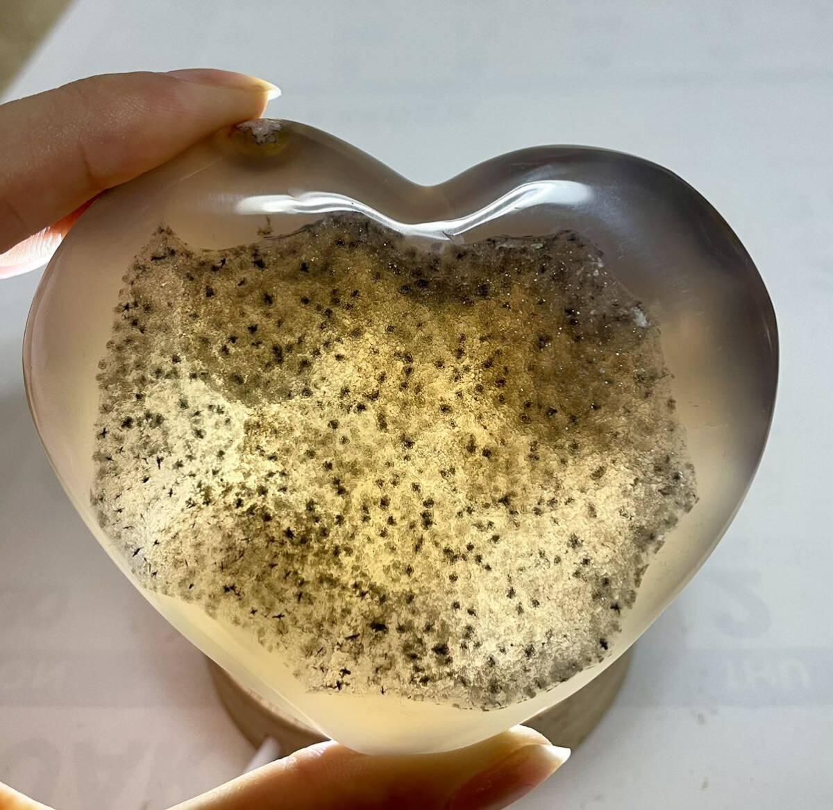 > ハートの瑪瑙 アゲート 017 シュガー水晶 パワーストーン 風水晶 魔除 浄化 ラッキー ドゥルージー クリスタル ブラックトルマリン入