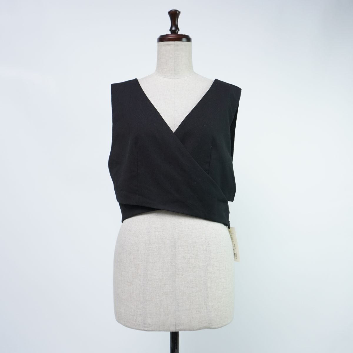 > 新品未使用 My:nia マイニア カシュクールベスト 裾デザイン ショート丈 トップス レディース 黒 ブラック サイズL*RC1272