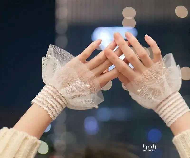 - ラスト1点!パール カフス 付け袖 アームカバー レース フリル つけ袖 二重袖 秋 冬