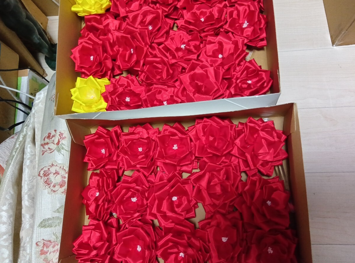 - 胸花 赤色32個+黄色2個 直径約8㌢ 式用 2箱