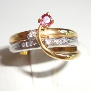 - サイズ11号 pt900/k18ルビー・ダイヤ入りファションリング 送料無料 used 質屋出品