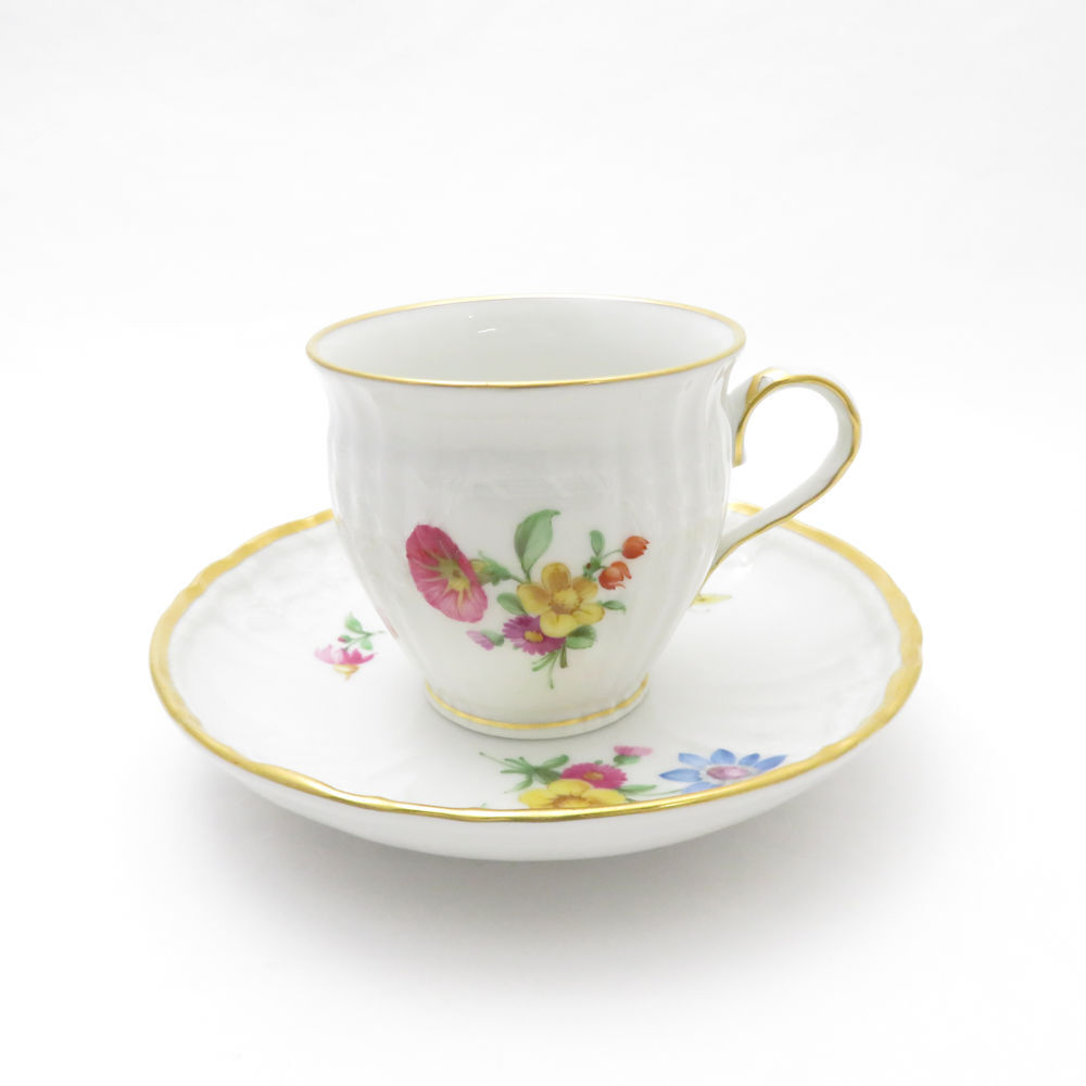 > 美品 KPM BERLIN KPMベルリン ロカイユ フラワーブーケ コーヒーカップ&ソーサー 珈琲 花 蝶 金彩 SU8335U