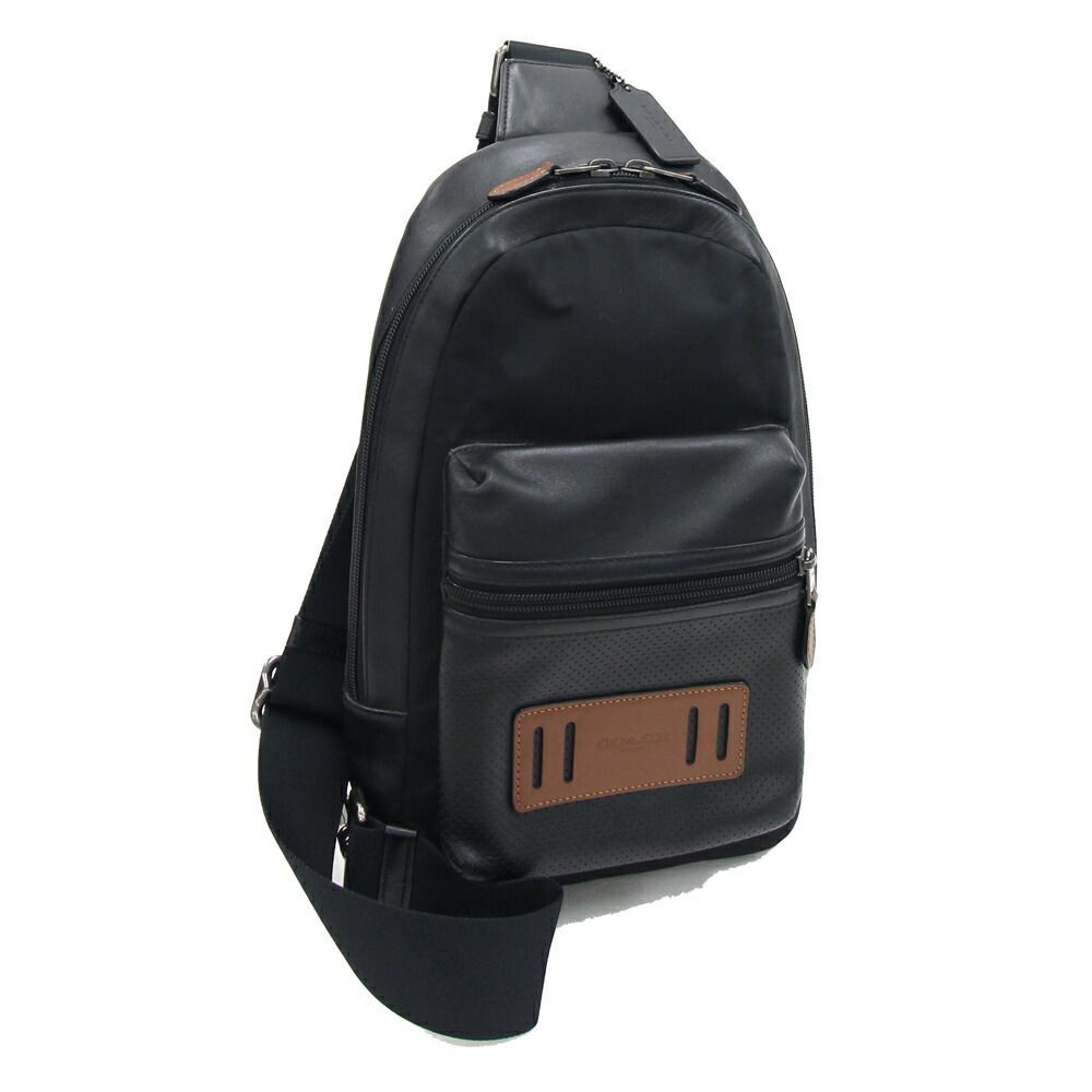 > コーチ ボディバッグ F56877 ブラック ブラウン レザー ナイロン 中古 ショルダー 斜め掛け パンチング ロゴ メンズ