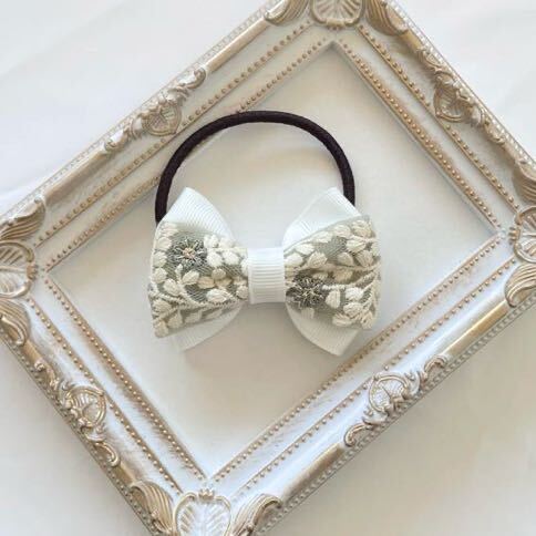 - ★★ハンドメイド34 ヘアゴム リボン インド刺繍リボン ヘアアクセサリー★★