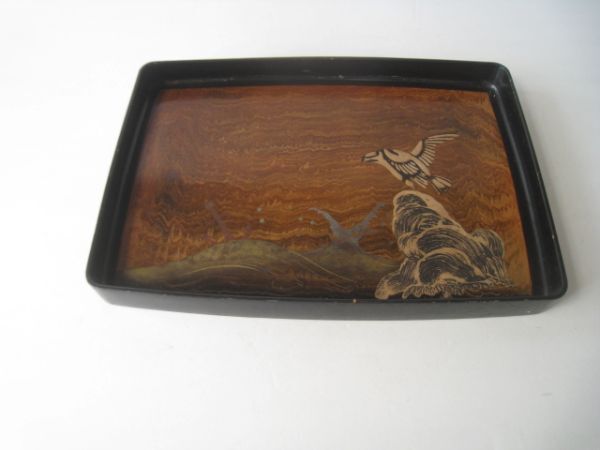 - お盆 木製漆器 鷹と波のデザイン サイズ:約27×39×H4㎝/23N8.1-15