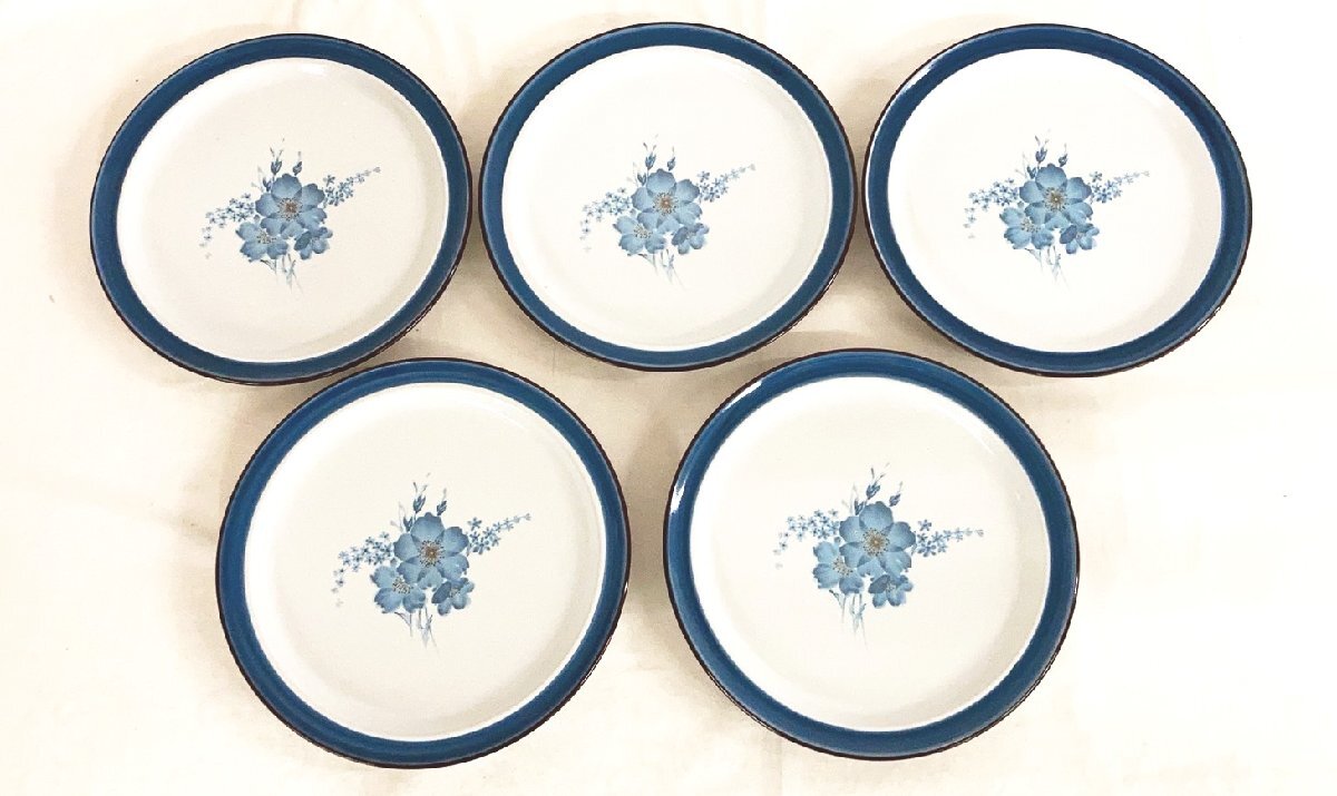 - 【中古】ノリタケ Noritake STONEWARE 青フチ 花絵柄 ディナープレート 5客セット 共箱なし NQ-2 20240805