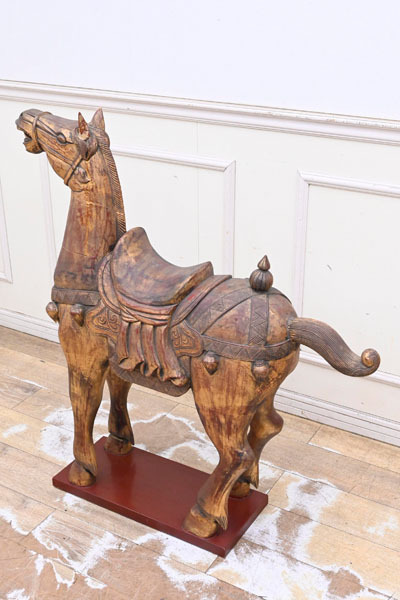 - QS14 大型 古い 時代 古玩 中国 木製 木馬 オブジェ 飾り物 鍍金仕上げ?