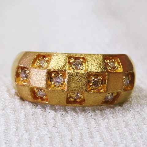 - 【値下げ交渉は質問欄より!】三越マーク★市松模様が可愛い♪K24製☆ダイヤ入りデザインリング♪#16号☆ピカピカ逸品指輪