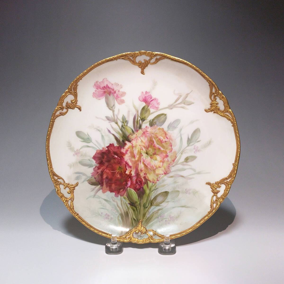 - KPM ベルリン 1880-90年頃 カーネーションのブーケ 飾皿