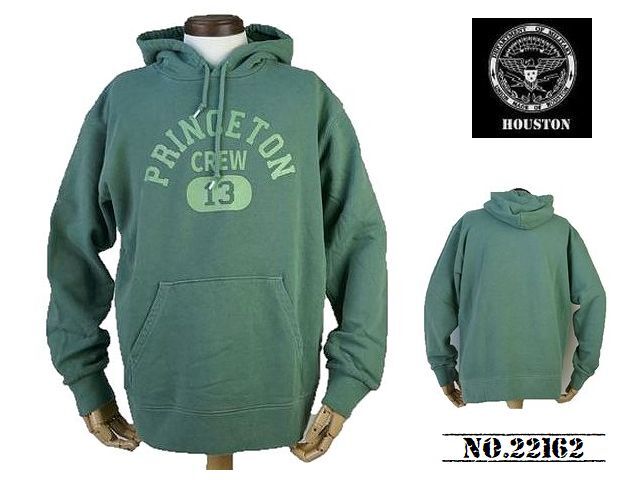 > 【送料無料 43%OFF】HOUSTON ヒューストン ピグメント加工 スウェットパーカー 「PRINCETON」 NO.22162 GREEN _Lサイズ