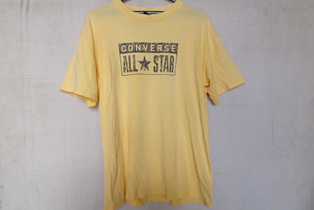 - CONVERSE/コンバース/半袖Tシャツ/フロントロゴプリント/かすれプリント/カジュアル/パステルイエロー/Lサイズ(8/8R)