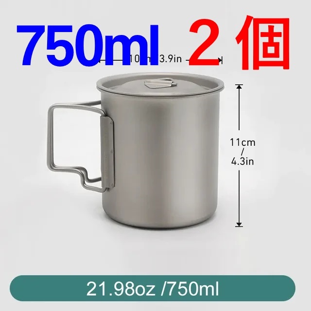 - 【2個組】チタンカップ750ml蓋付 750mlはチタンクッカーとして超便利 ソロキャンプに最適! B