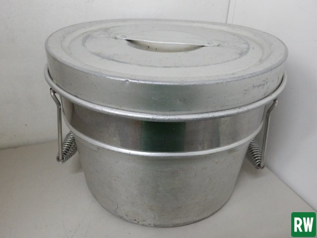 > 【1缶】二重食缶 6L アルミ アルマイト? 外寸290×290×高さ215mm 内径260mm 現品限り 食缶 給食 厨房用 調理場 業務用 [2]