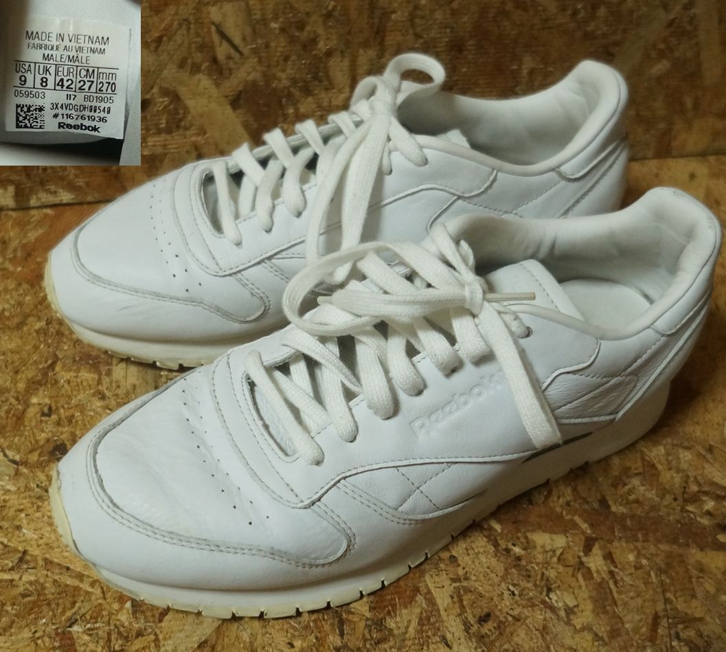 > REEBOK 本革 CL LEATHER OMN bd1905 US9 白系 クラシック レザー OMN リーボック
