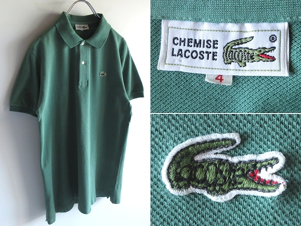 - 希少 80sビンテージ LACOSTE ラコステ ビームス別注元ネタロゴ 文字ワニ L-1212 鹿の子ポロシャツ 4 グリーン 緑 大沢商会 ネコポス対応