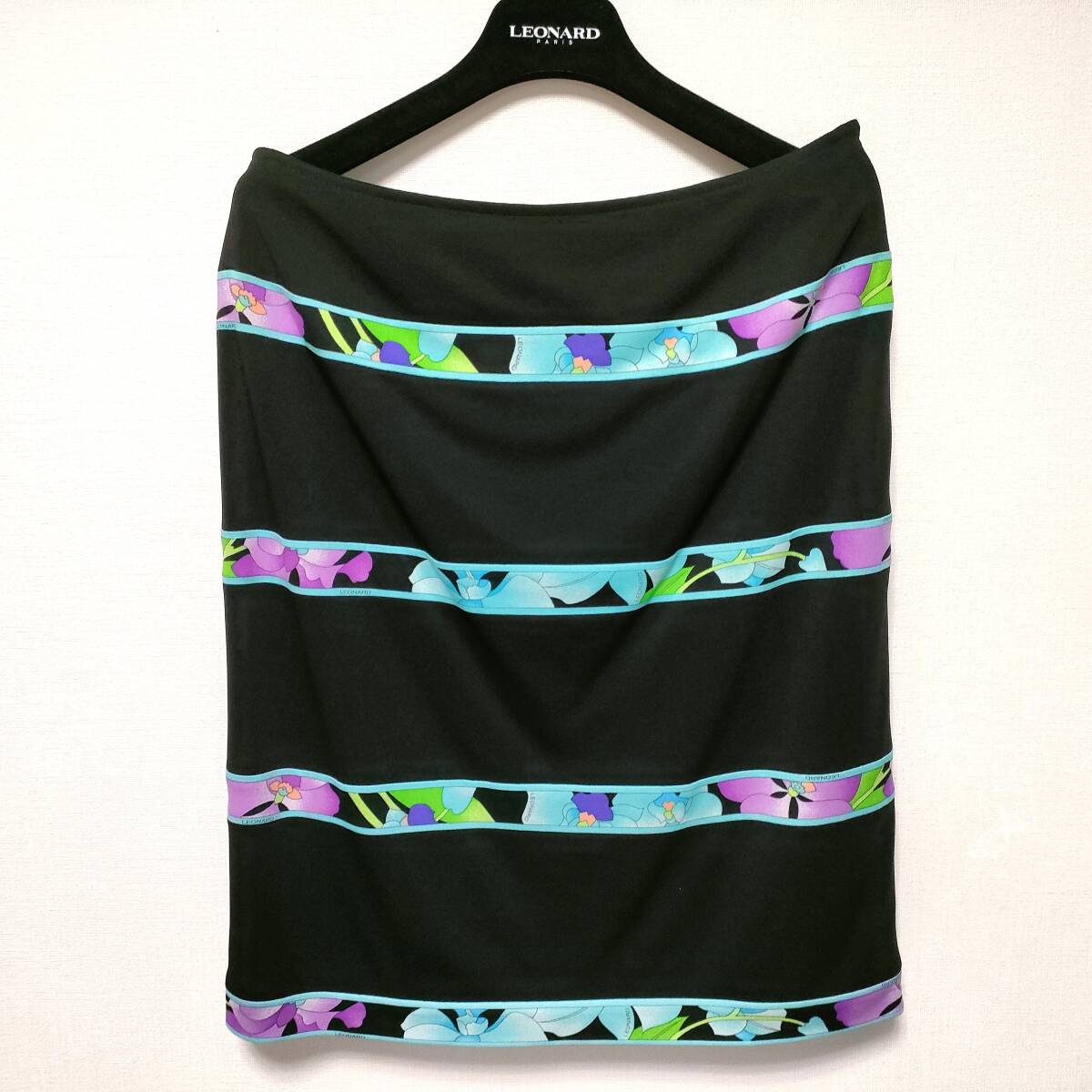 - 即決 送料込み ウエスト76㎝ ウエスト幅38 大きめ サイズ40 カンカン LEONARD レオナール スカート 花柄ライン