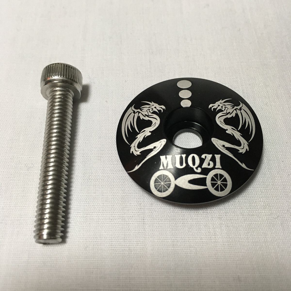 - ☆ 新品!! 自転車 軽量 アルミ トップキャップセット OS用 ブラック(ドラゴン柄) ☆