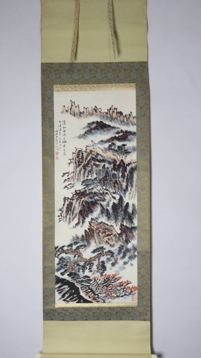 - 中国書画 掛け軸 近現代 陸厳少書「山水図」紙本立軸 書道巻物 真筆逸品 肉筆保証 唐物 時代物 古美術 LOT-8114