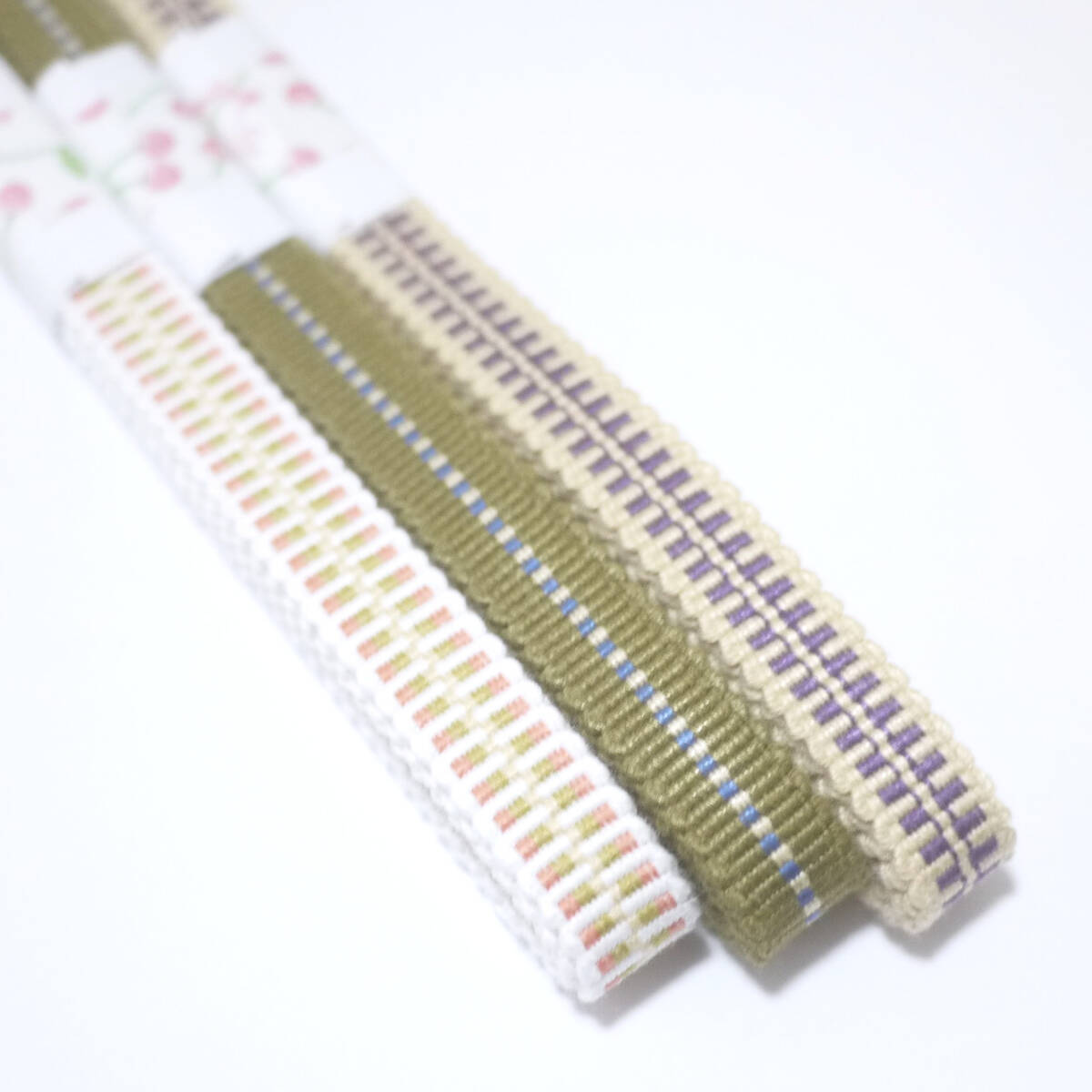 - 02-L★三分紐 長尺 3本 お試しセット 木綿 真田紐 国内産★白・サーモンピンク・抹茶色・ベージュ・紫