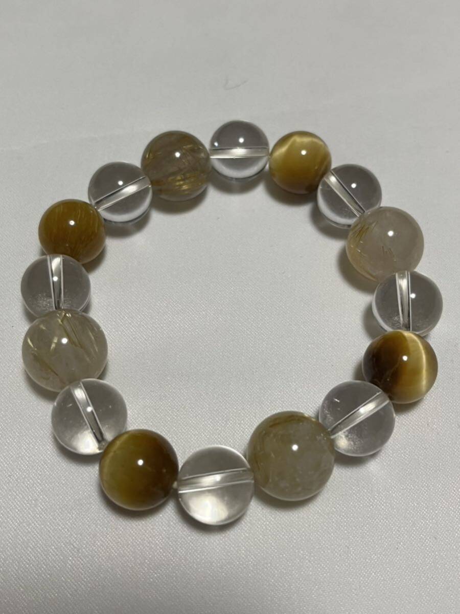 - 天然石 ルチルクォーツ パワーストーン ブレスレット 水晶 タイガーアイ 開運 金運 腕周り 約15cm