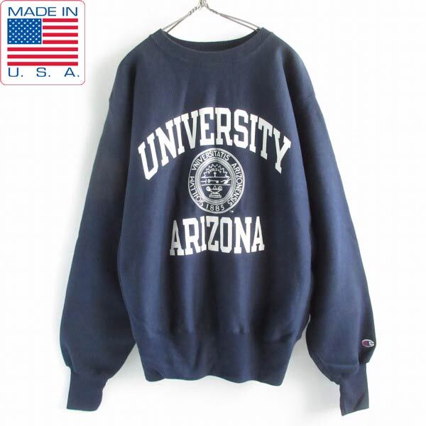 - 新品 90s 刺繍タグ USA製 チャンピオン ARIZONA リバースウィーブ 紺 L カレッジプリント スウェット ビンテージ D145-13-0018ZVW