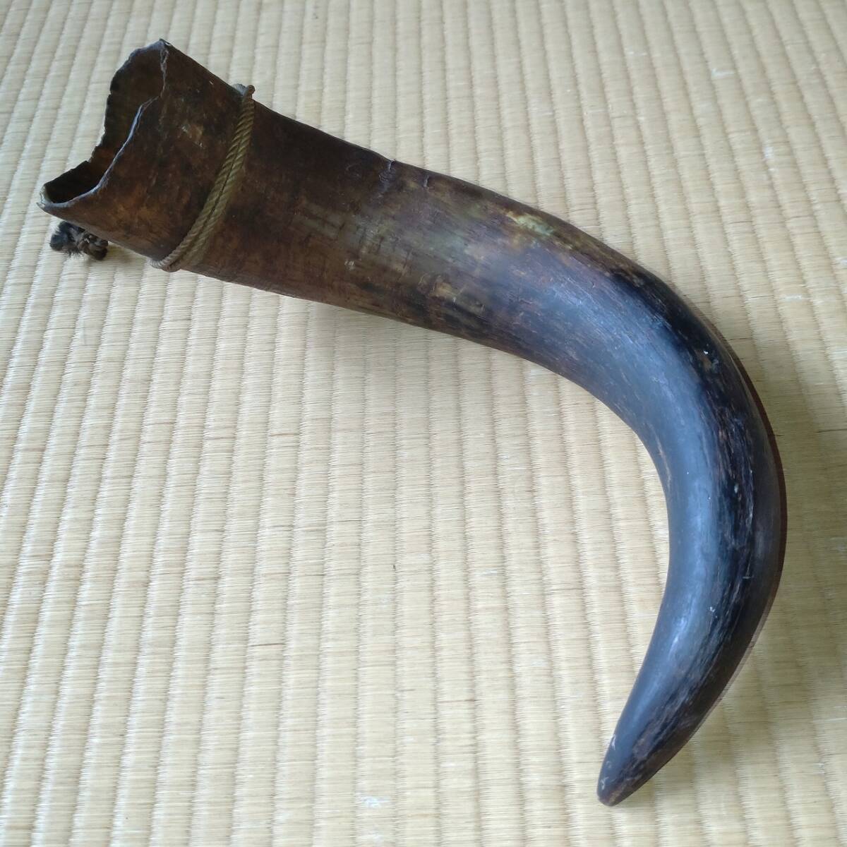 - 壁掛け花瓶 水牛? ツノ 全長約330㎜ 口径約最大80㎜ 牛の角 つの 花器 花刺し 壁飾り 【3519】