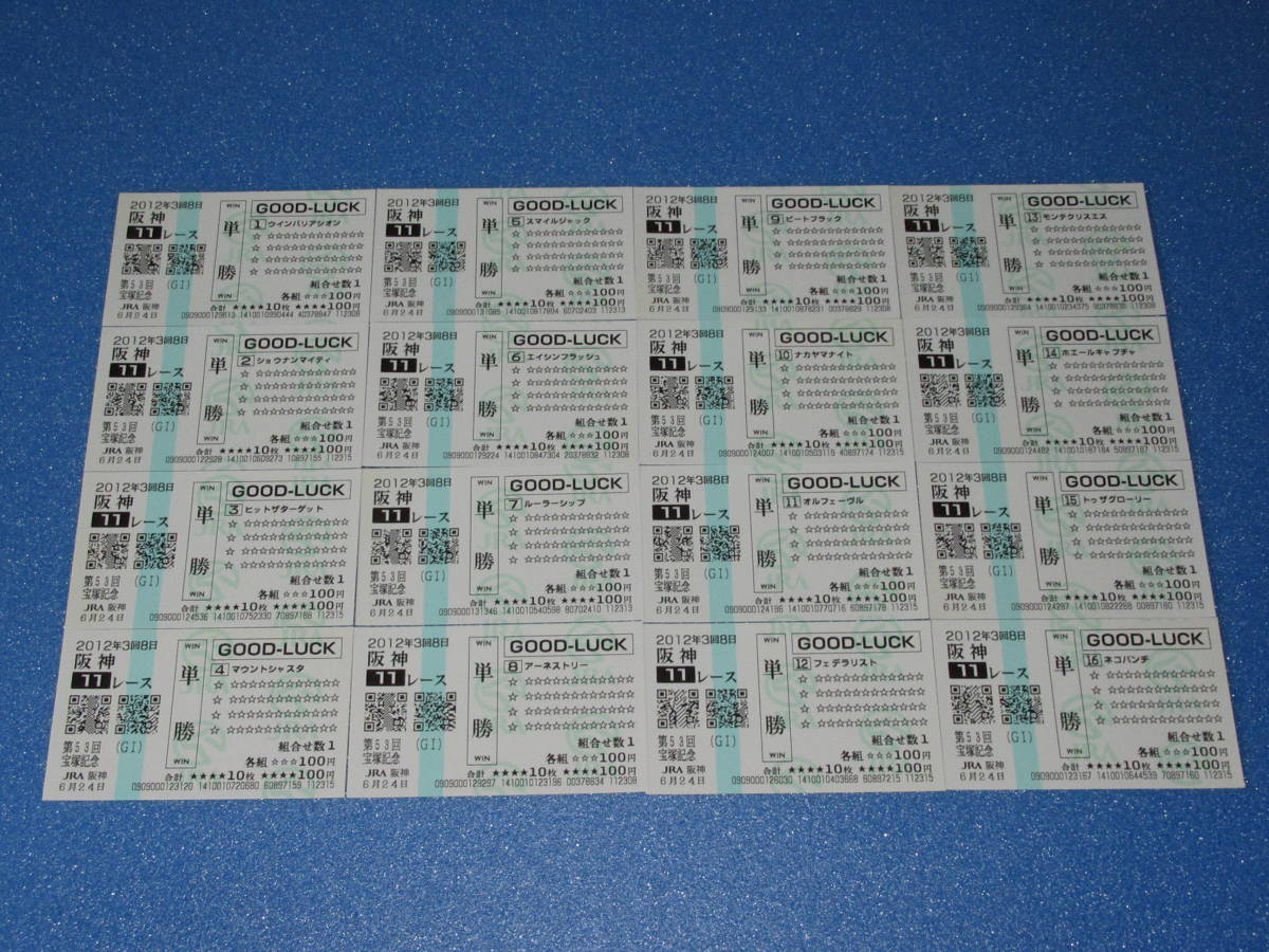 > 送料無料 ★懐かしの単勝馬券(QP) ☆オルフェーヴル他全馬 全出走16頭 第53回 宝塚記念 GⅠ 2012.6.24 池添謙一 ルーラーシップ ネコパンチ