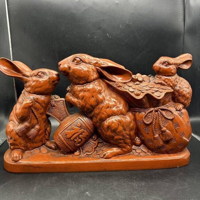 - 常滑焼 朱泥 卯 うさぎ 干支置物 開運 縁起物 オブジェ インテリア 置物 陶器 573TJ