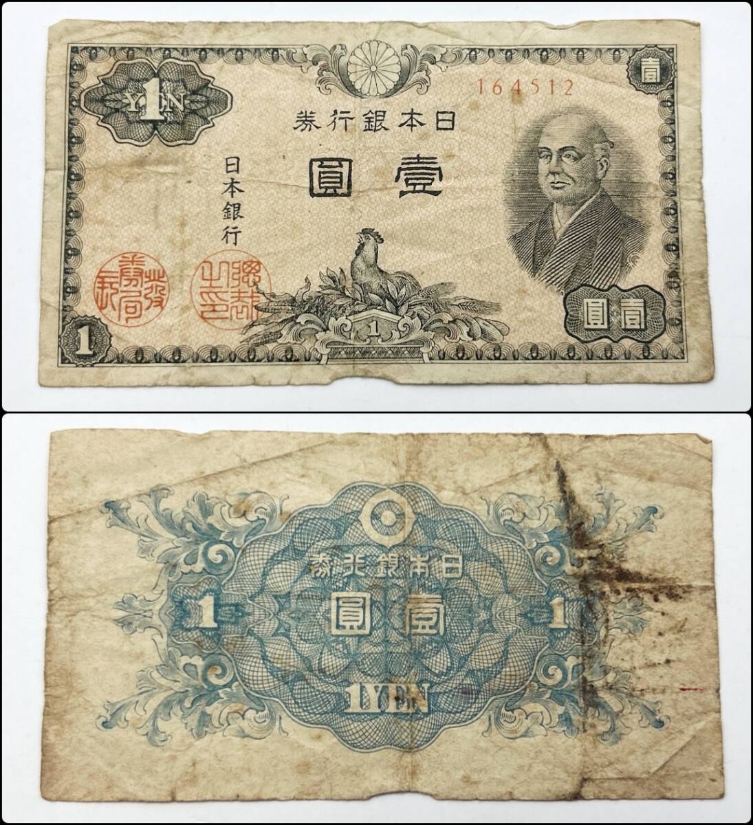 - 〓古銭・旧紙幣〓 日本銀行券A号1円 二宮尊徳 壹圓札 × 1枚 @一円札 レトロ・アンティーク