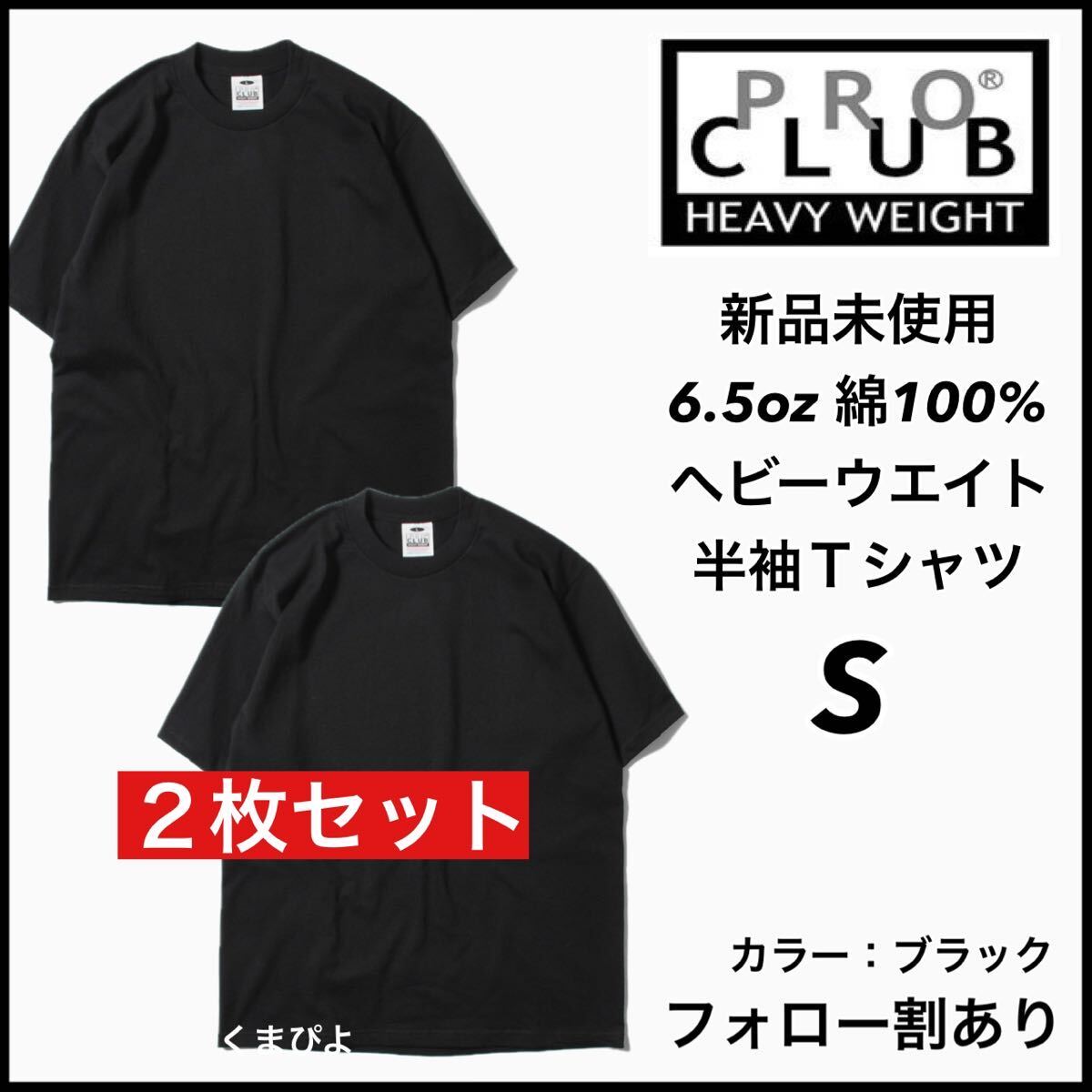 - 新品 プロクラブ 6.5oz ヘビーウエイト 無地 半袖Tシャツ 黒2枚 Sサイズ PRO CLUB