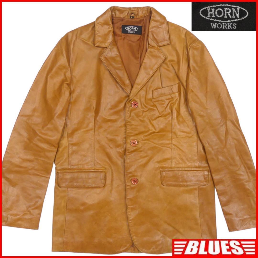 - 即決★HORN WORKS★メンズL レザーテーラードジャケット ホーンワークス 茶 キャメル 本革 ブレザー 本皮 スーツ 革ジャン 背広