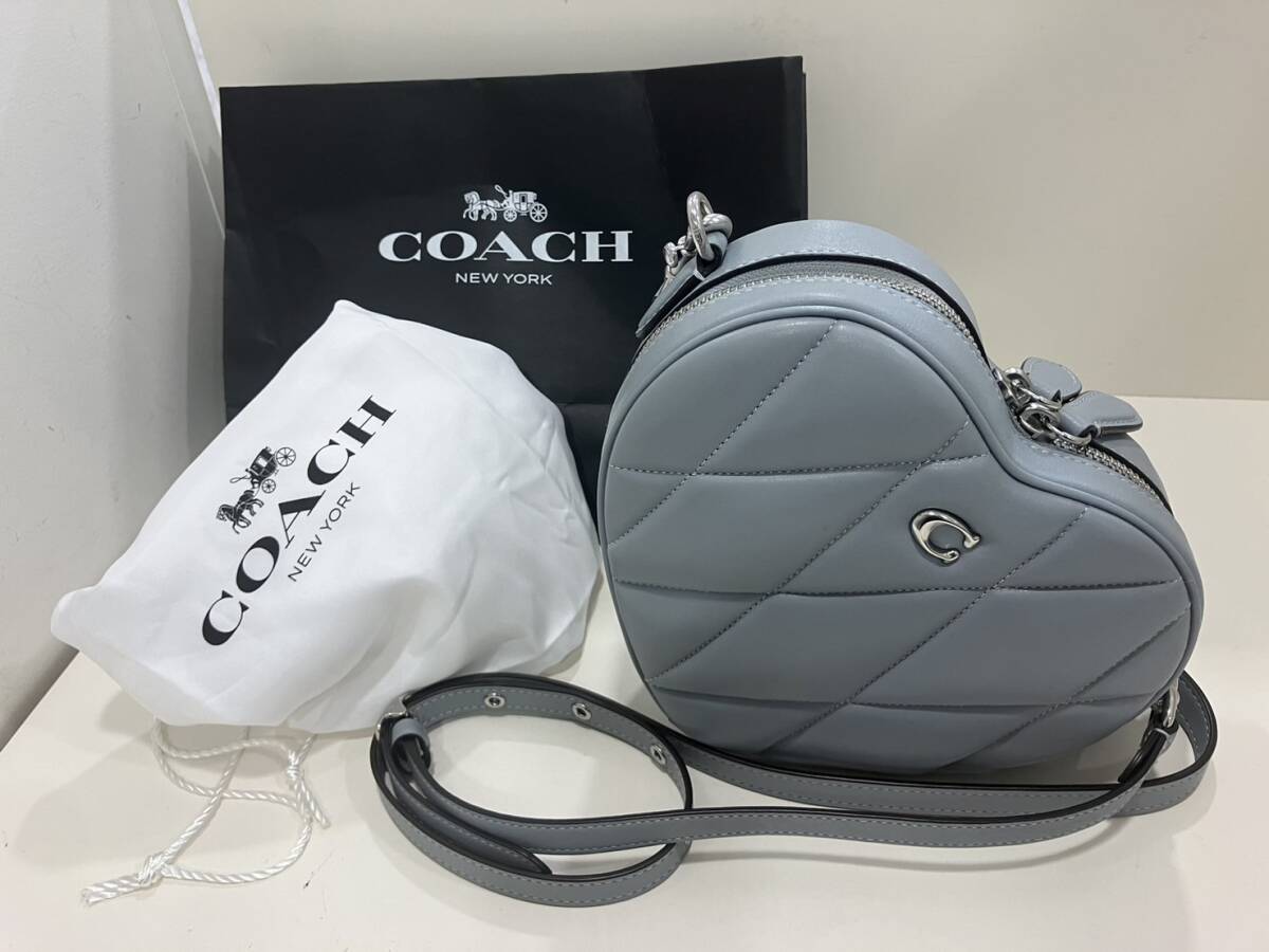 - 【極美品】コーチ COACH CE725 キルティング ハート クロスボディ バッグ グレーブルー