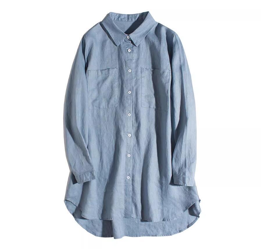 - 新入荷*シャツブラウス 長袖 トップス カジュアル 上品 お出かけ 外出 シャツ 通勤 大人 折襟 チュニック 大きいサイズ*ブルー