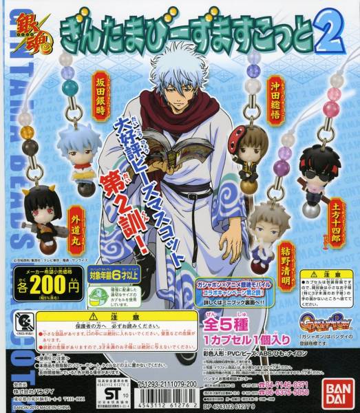 - ★銀魂 ぎんたま びーず ますこっと 2…全5種 (坂田銀時/土方十四郎/沖田総悟/結野清明/外道丸) ビーズ玉 付き フィギュア マスコット