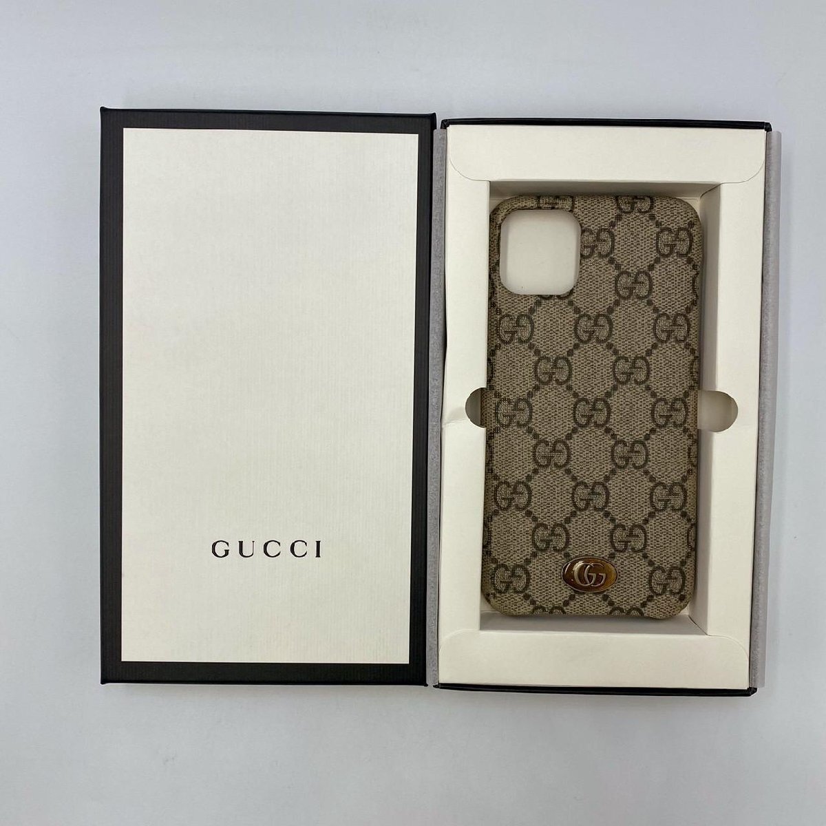 > GUCCI 25714 スマホケース i Phone 11 Pro Max<雑貨>グッチ GGスプリーム ベージュ×エボニー メンズ レディース ブランド
