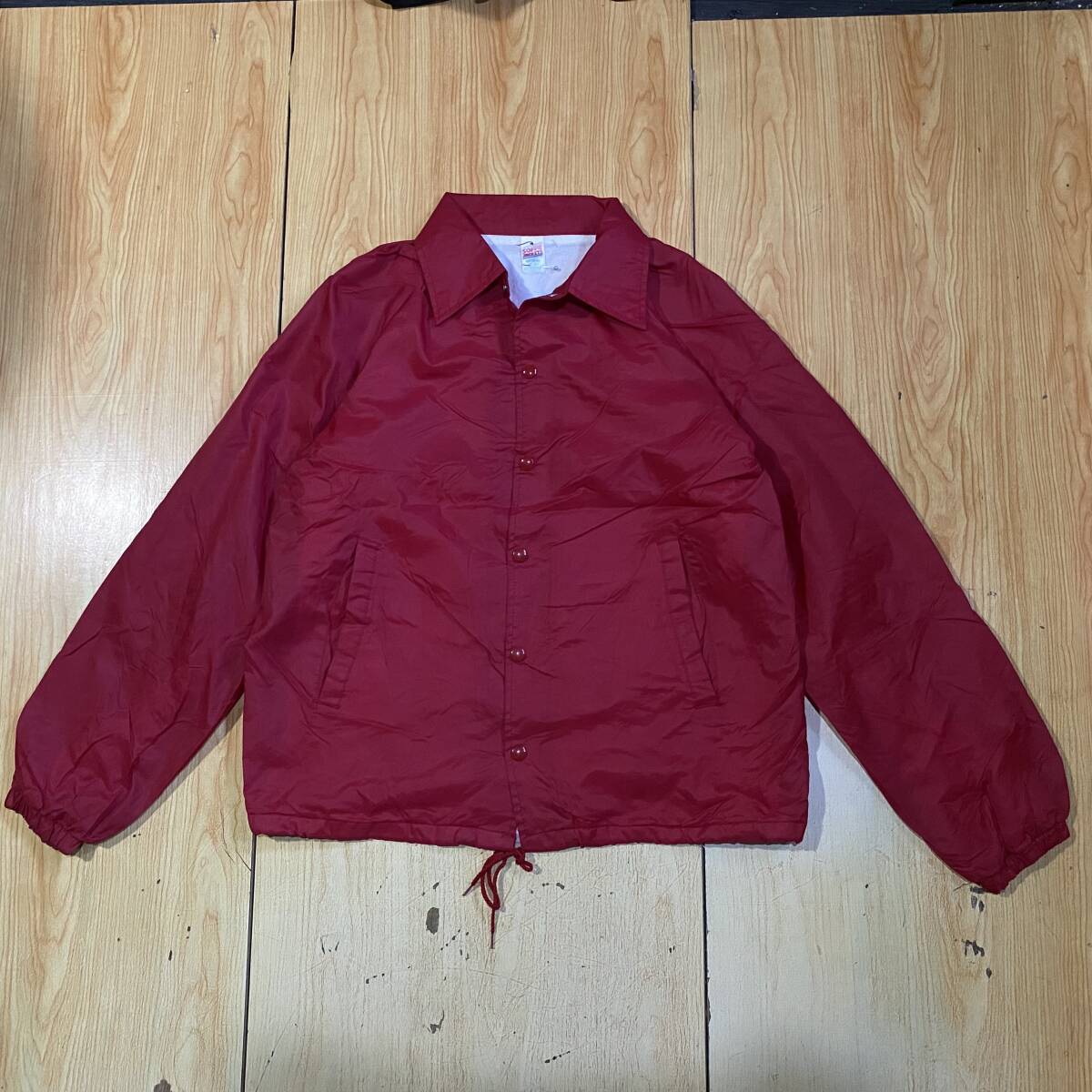 > 即決・輸入古着・ビンテージ・'8~90s前半頃のUSA製・SOFFEのナイロンコーチジャケット・深い赤・M