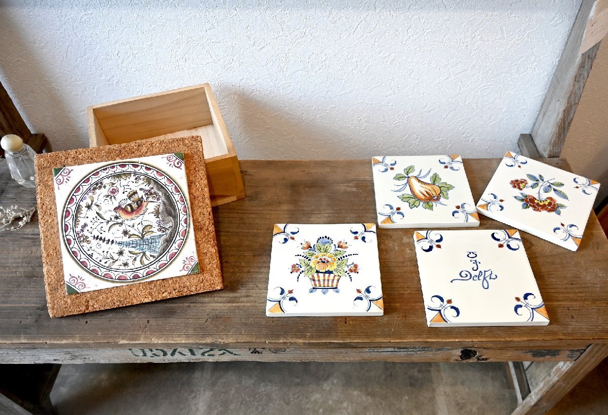title:オランダ製 陶版 タイル 1992年購入 5点セット 可愛いお花柄 小鳥柄 diy レトロ ヴィンテージ 古道具のgplus広島 2408i